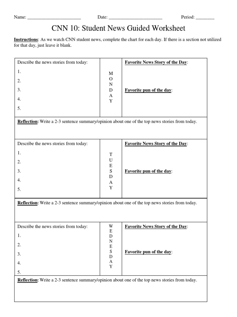 Cnn Student News Worksheet